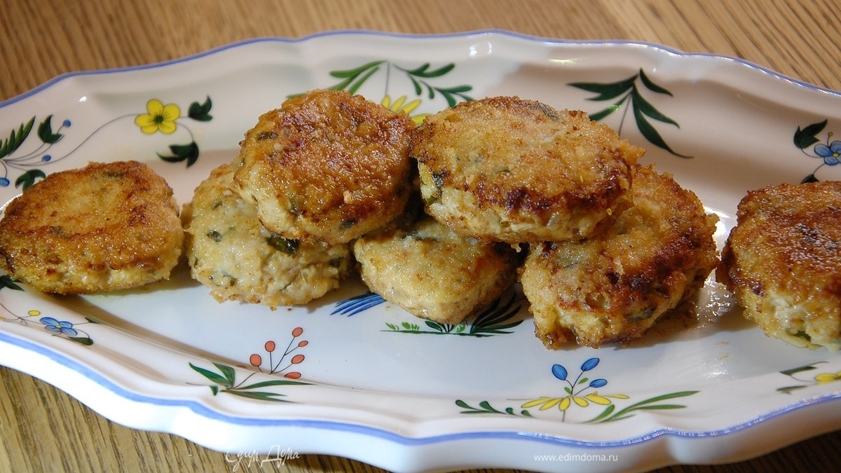 Разогреть в сковороде растительное и сливочное масло и обжаривать котлеты до появления золотистой корочки, затем перевернуть, накрыть крышкой и томить 7–10 минут на маленьком огне.