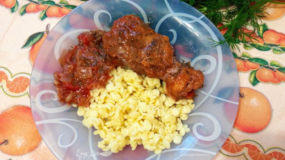 Подаем с любимым гарниром, полив соусом от тушения. Я взяла на гарнир пасту птитим. Приятного аппетита!