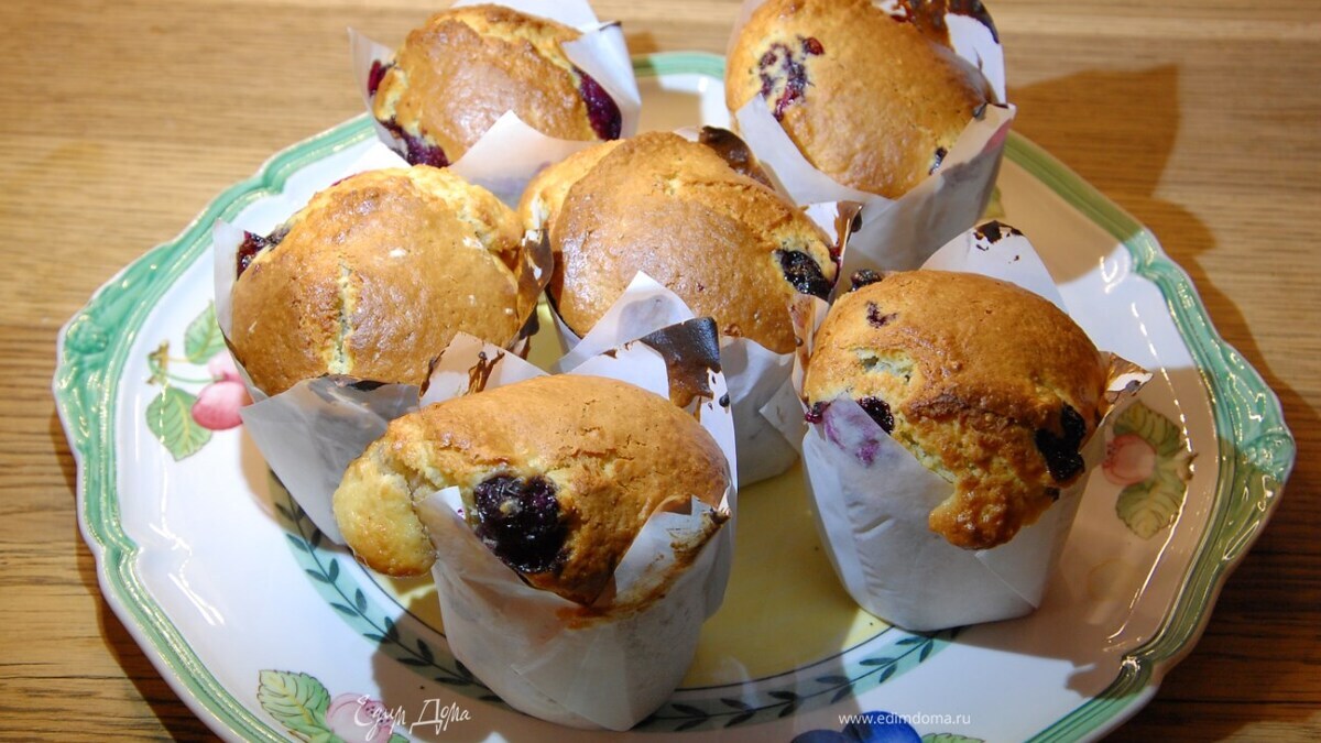 Кексы с голубикой, фундуком и черничным джемом