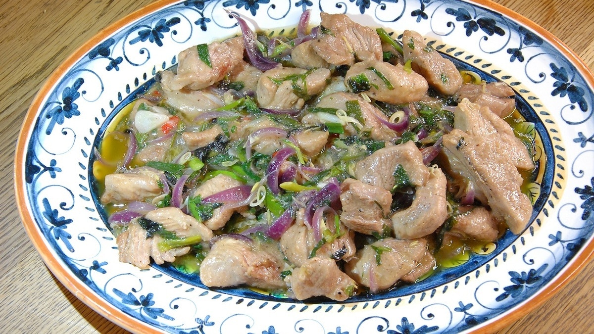 Индейка, жаренная в воке с лимонником, зеленым луком и перцем чили
