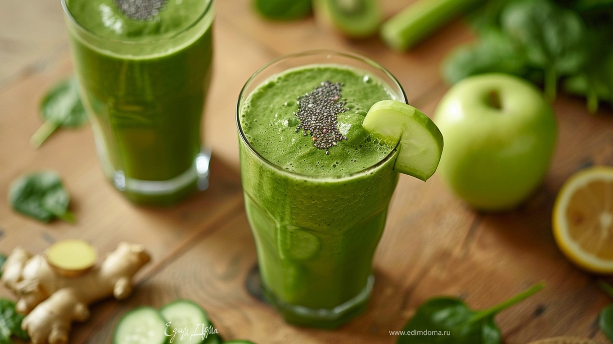 - Шаг 1Помойте шпинат. Удалите сердцевину из яблока и нарежьте его на кусочки. Очистите и нарежьте огурец. Натрите свежий имбирь. Если вы используете семена чиа, замочите их в небольшом количестве воды на 10 минут.