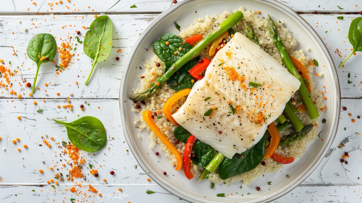 Рыбное филе на пару с киноа и овощами