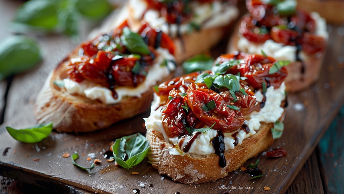 Брускетта с рикоттой и вялеными томатами