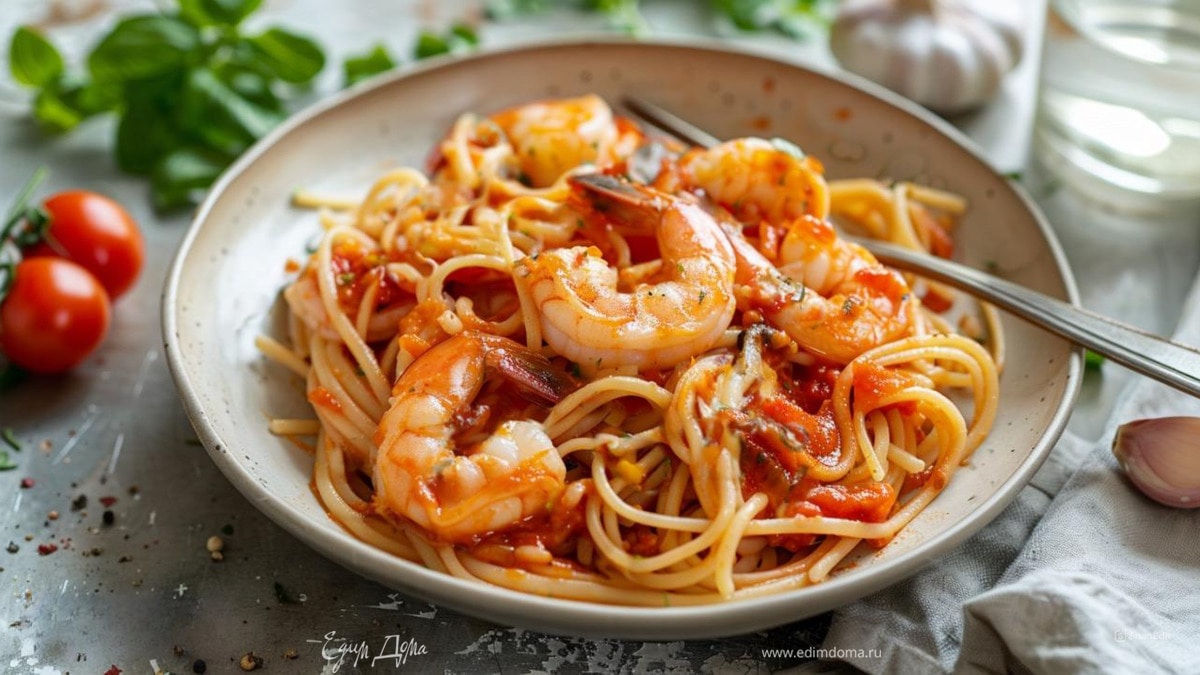 - Шаг 3Добавьте креветки в сковороду и обжаривайте их 3–4 минуты. Добавьте нарезанные помидоры в сковороду. Готовьте, помешивая, 3–4 минуты, пока помидоры не станут мягкими.