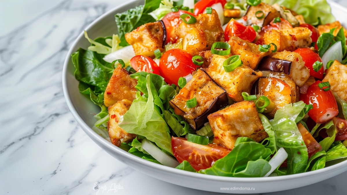 Салат с хрустящими баклажанами и помидорами
