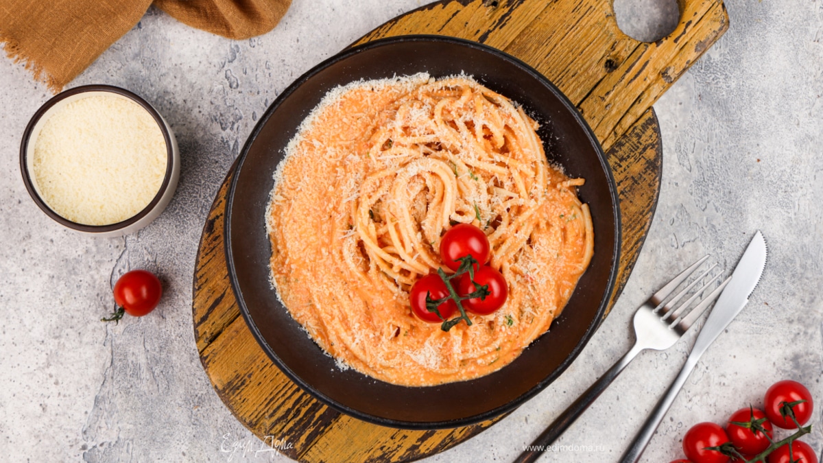 Готовую пасту выложите на тарелку, посыпьте тертым сыром и подавайте. Приятного аппетита!