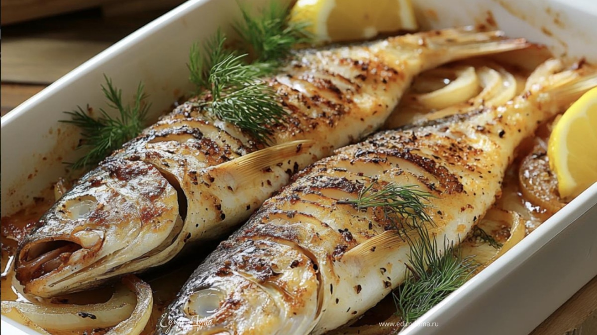 Для более насыщенного вкуса перед запеканием можно начинить брюшко рыбы веточками укропа и петрушки.