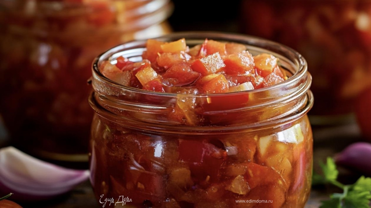 - Шаг 7Горячее лечо разложите по стерилизованным банкам, оставляя 1–1,5 см от края.