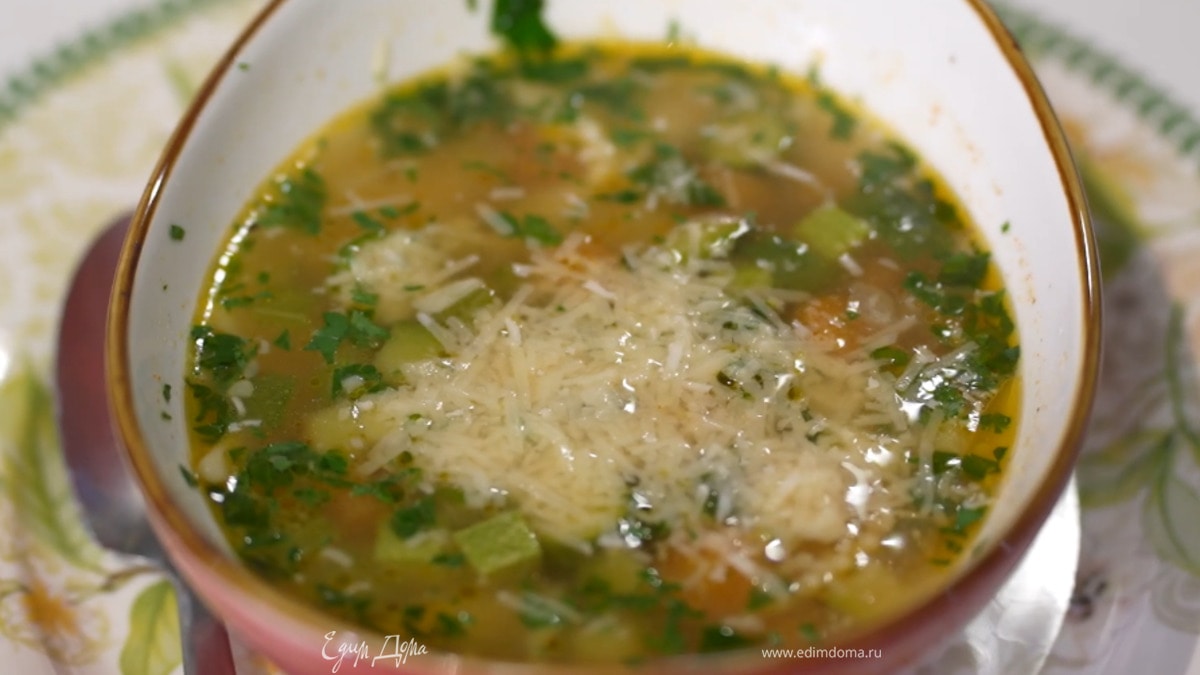 Минестроне с кабачком, цукини и фарфалле