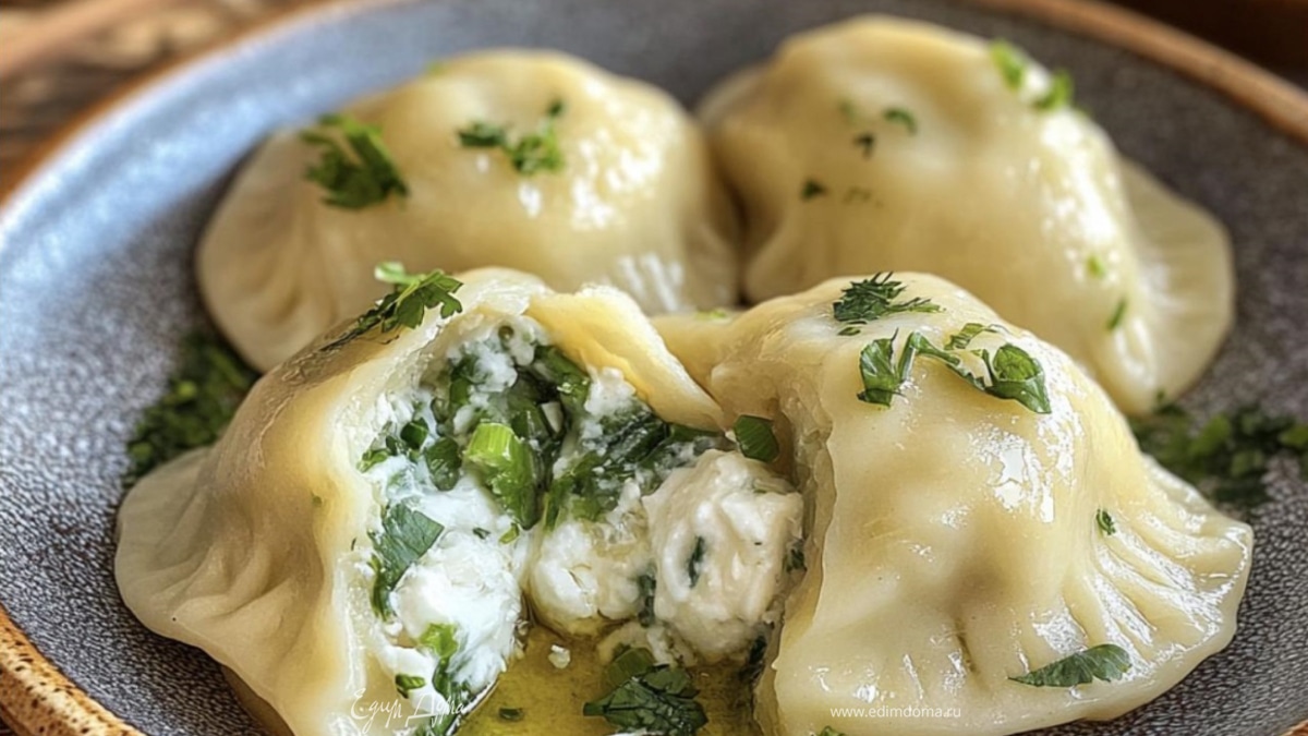 Вареники с творогом и зеленью
