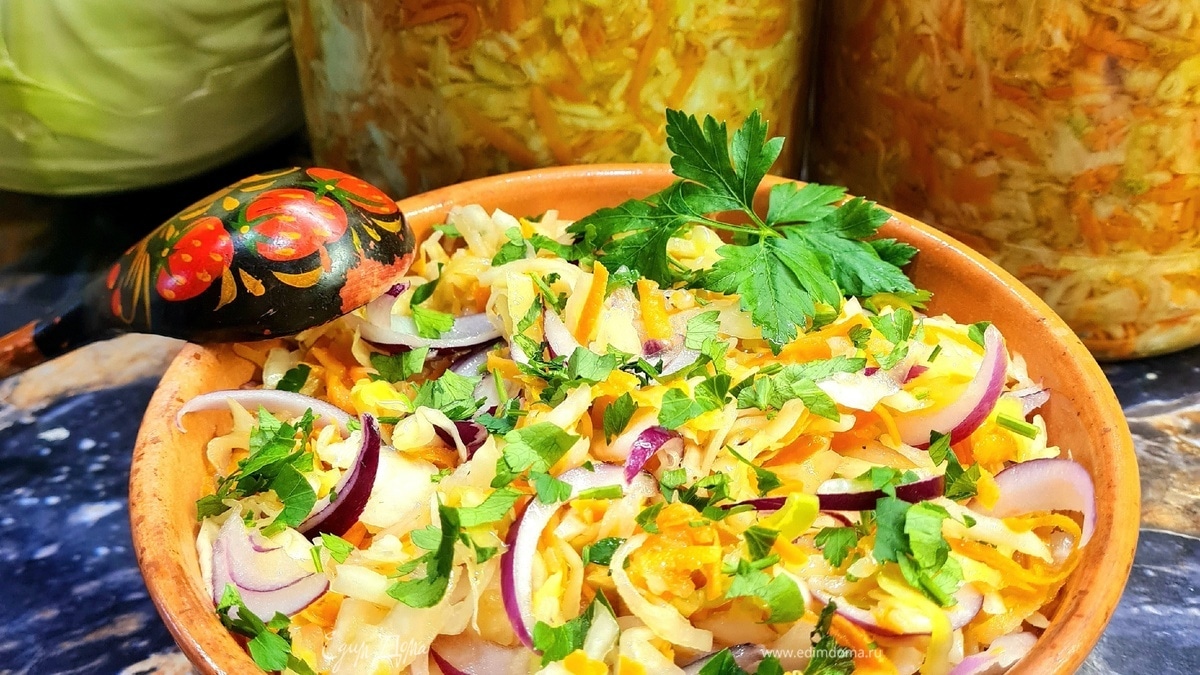 Капуста белокочанная, маринованная с морковью