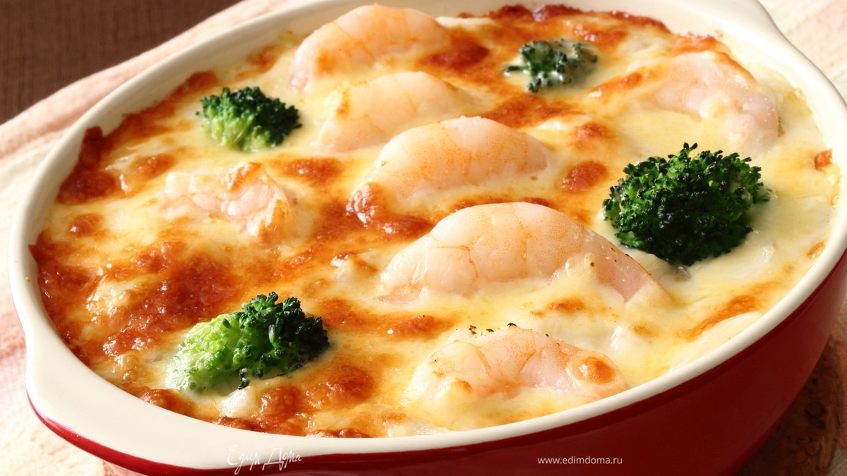 Гратен с брокколи и креветками