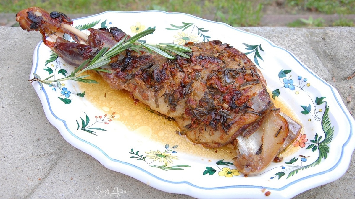 Баранья лопатка в маринаде из розмарина, чеснока и вяленых помидоров