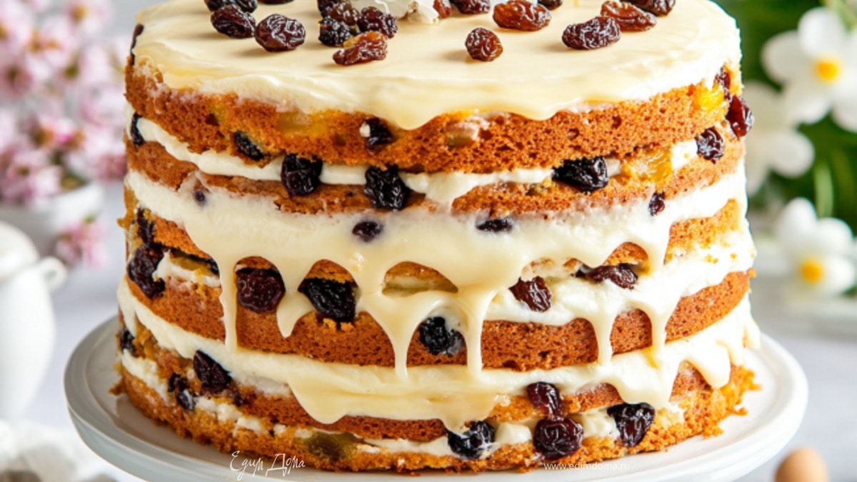 - Шаг 6Готовый кулич достаньте из формы и покройте глазурью. При желании — украсьте сахарной посыпкой или засахаренными фруктами.