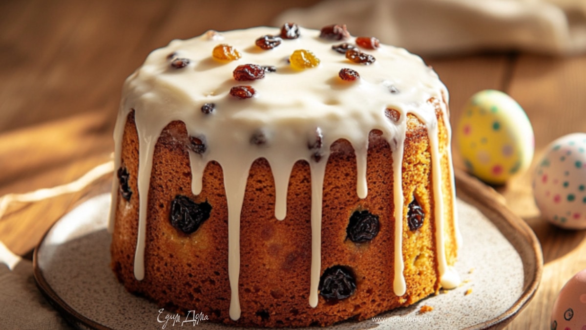 взбейте белок с сахарной пудрой и лимонным соком до плотной и глянцевой массы. Дайте куличу полностью остыть, затем покройте его глазурью. - Шаг 5Выложите кулич на сервировочную тарелку.