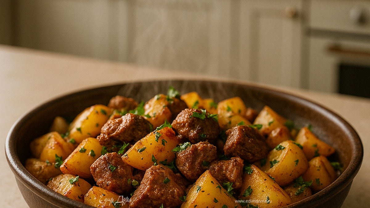 Это блюдо — настоящая классика татарской кухни. Картошка, запеченная с мясом, специями и луком, получается ароматной и сытной. Главное — выбрать качественное мясо и не бояться щедро использовать специи.