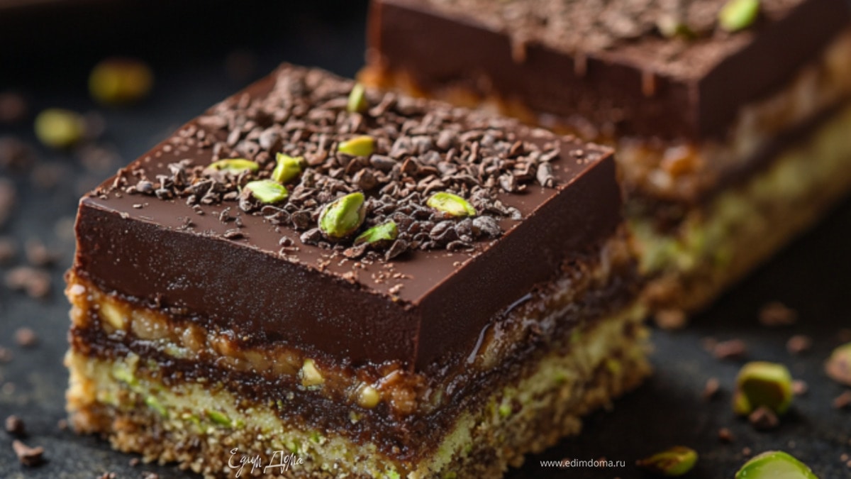 - Шаг 4На остывшую основу равномерно нанесите слой шоколадно-фисташковой массы.