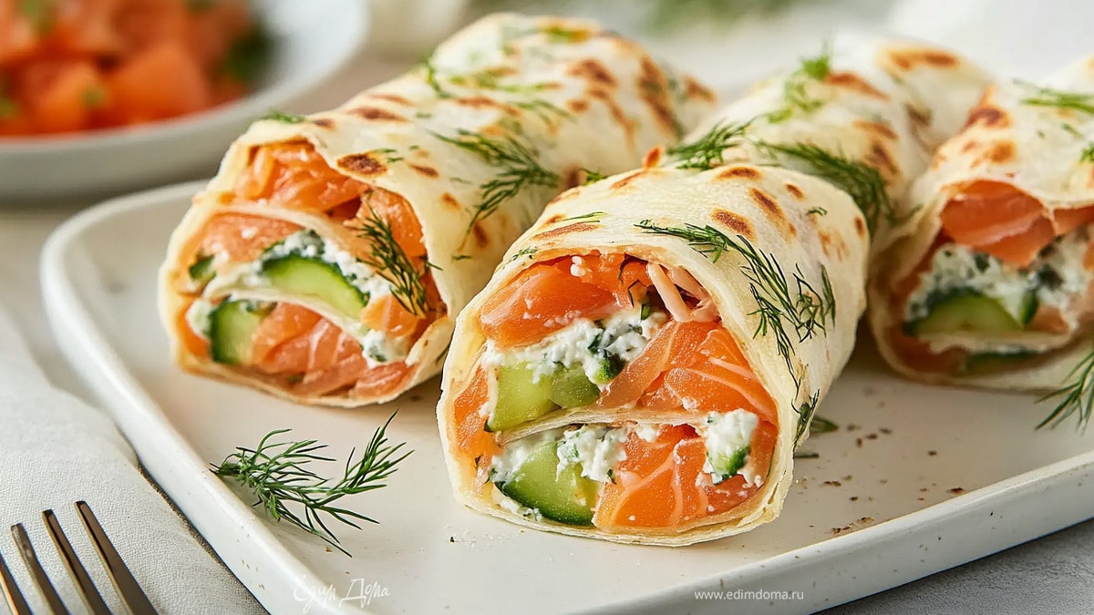 Равномерно нанесите половину творожного сыра на первый лист лаваша, оставляя немного места по краям. Выложите половину нарезанных огурцов поверх слоя сыра. Посыпьте половиной нарезанного укропа. Аккуратно распределите половину ломтиков нерки поверх огурцов и укропа. Сверните лаваш в плотный рулет, начиная с одного края. Следите, чтобы начинка не высыпалась.