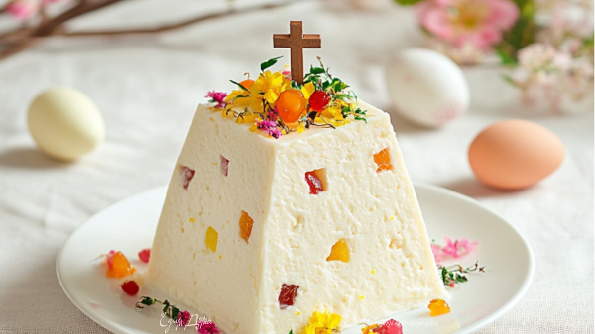 Выложите внутрь марлю в два слоя, так чтобы края свисали. Переложите творожную массу, утрамбуйте ложкой, накройте марлей сверху. Установите груз и уберите в холодильник минимум на 12 часов. Поместите форму в глубокую тарелку еили миску — в процессе будет выделяться сыворотка. - Шаг 4Снимите груз, аккуратно переверните пасху на тарелку, снимите марлю.