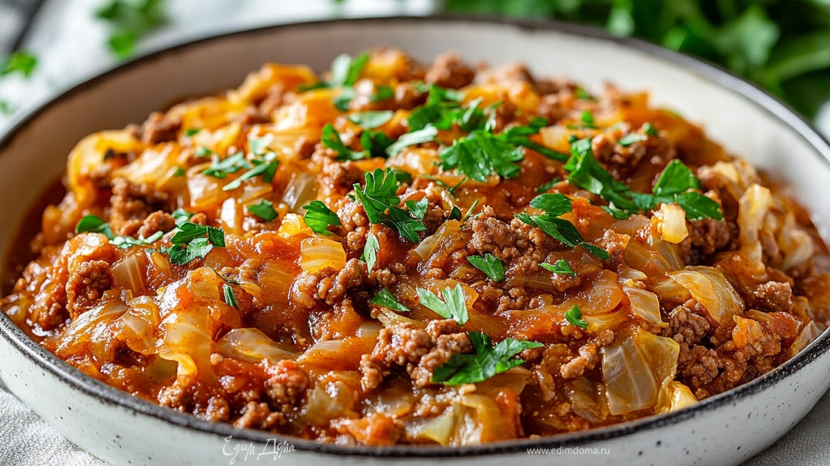 Тушеная капуста с фаршем