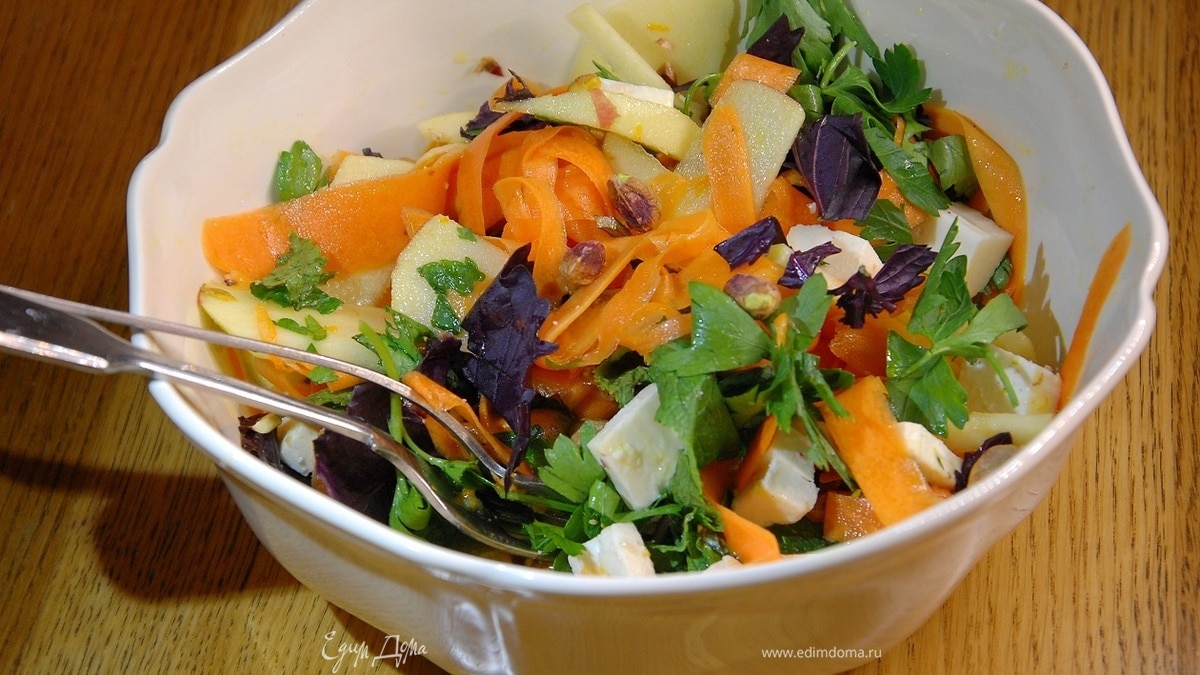 Салат из моркови и яблок с фетой, фисташками и зеленью