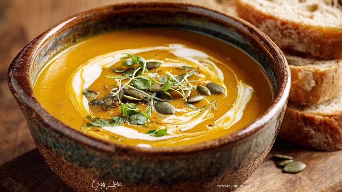 Сливочный крем-суп из тыквы с чесноком