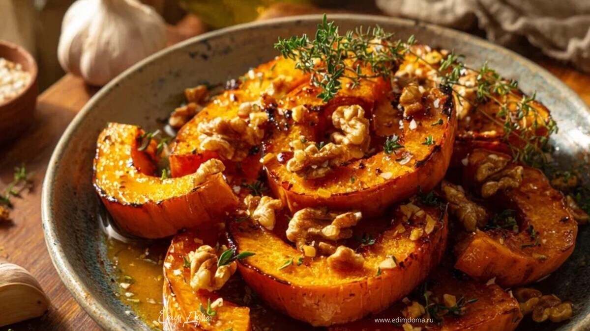 Печёная тыква с мёдом и орехами