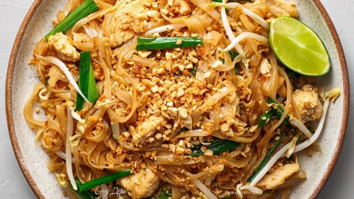 Пад Тай с курицей — классическое блюдо тайской кухни: пряное, с насыщенным вкусом, кисло-сладкое и чуть ореховое. Отлично подойдёт как сытный обед или ужин.