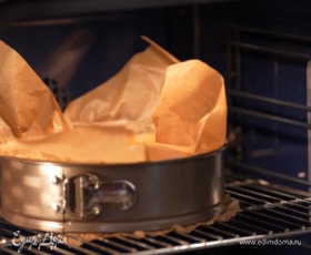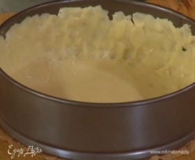 Раскатать тесто между двумя листами бумаги для выпечки, выложить его в разъемную форму, выстеленную пекарской бумагой, и сформировать бортики.