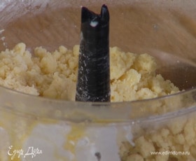 В чашу блендера просеять муку, добавить масло, желток, сахарную пудру и соль, влить 2 ст. ложки ледяной воды и все взбить. Влить еще немного ледяной воды, чтобы тесто сбилось в ком.