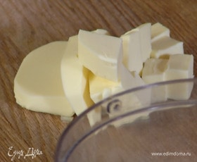 Предварительно охлажденное сливочное масло нарезать кубиками.