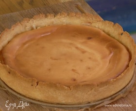 С подпеченного тарта снять бумагу с бобовыми, влить крем и отправить обратно в духовку на 45 минут.