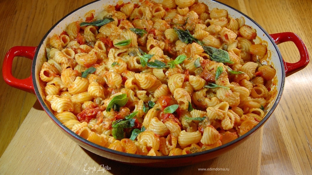Макароны в духовке с помидорами и баклажанами