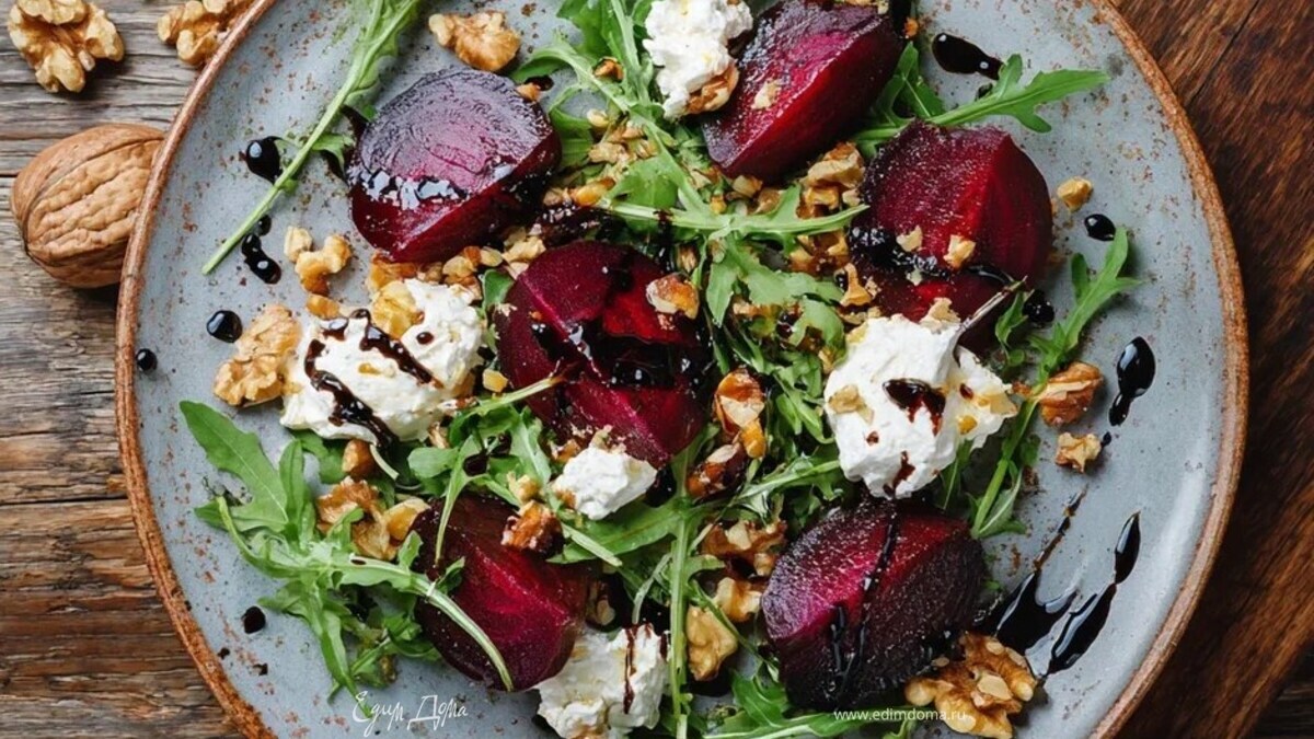 Салат с печёной свёклой, козьим сыром и грецким орехом