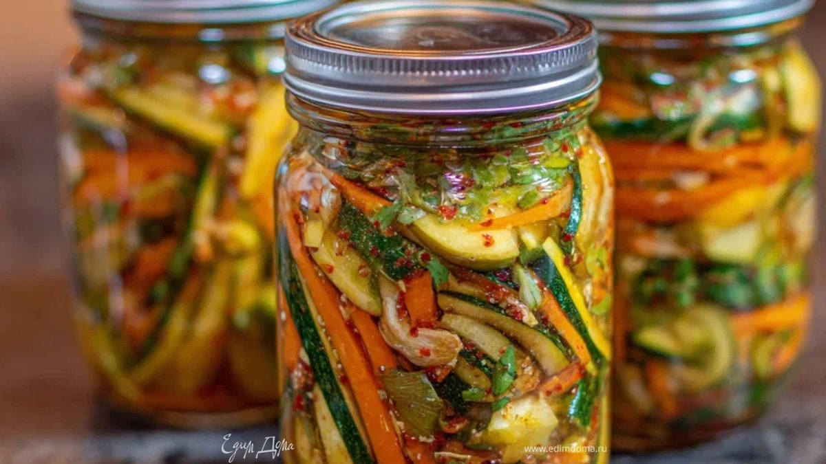 Острые, ароматные и хрустящие кабачки с морковью и специями — отличная заготовка, которая украсит зимний стол. Прекрасно сочетается с мясными и овощными блюдами.
