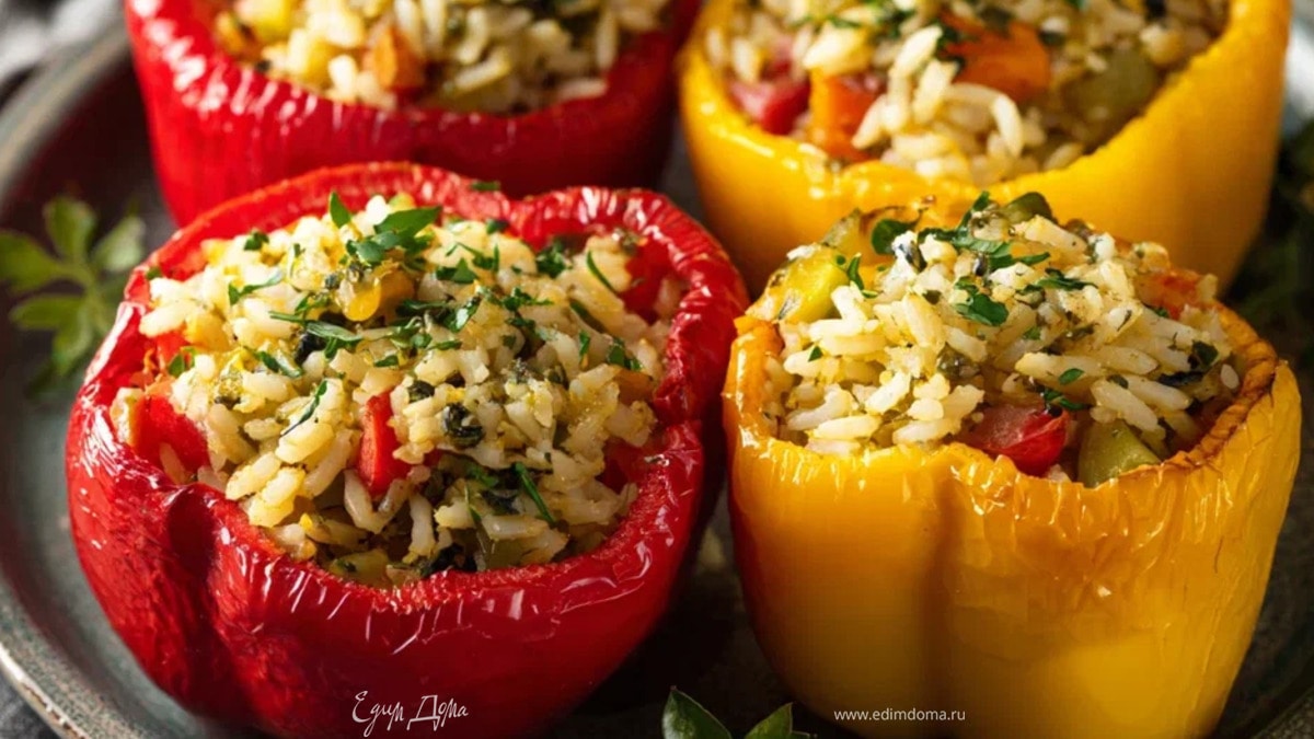 Печёные перцы, фаршированные рисом и овощами — ароматное и сытное блюдо без мяса. Отличный вариант для обеда или ужина, подходит вегетарианцам. Перцы получаются мягкими, а начинка — сочной и пряной.