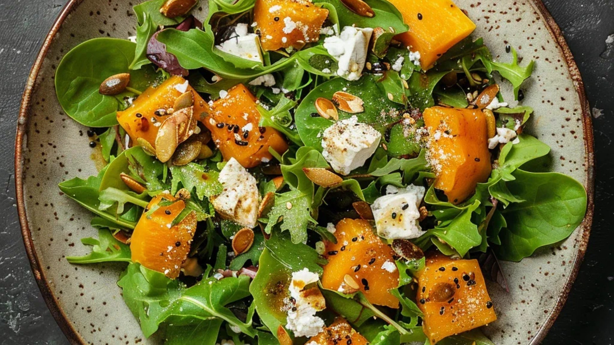Тёплый салат с запечённой тыквой, мягким козьим сыром и орехами. Лёгкий, ароматный и насыщенный — отлично подойдёт как основное блюдо или как гарнир. Особенно хорош с мёдовой заправкой.