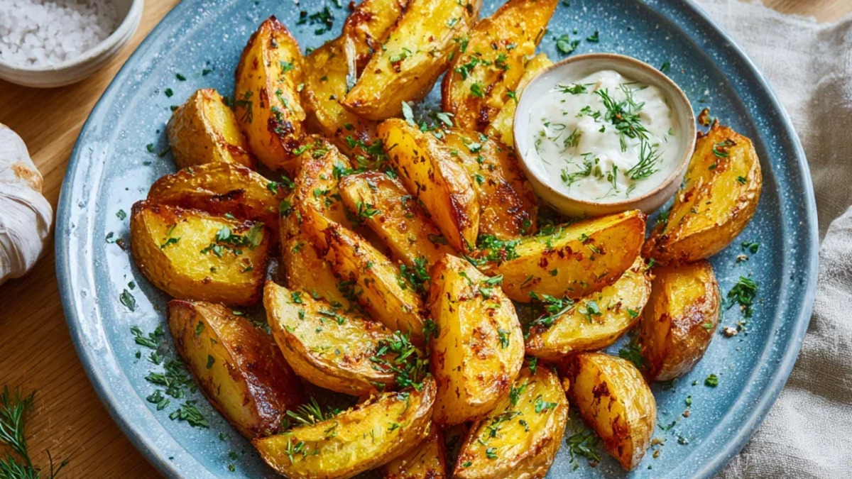 Картофель с хрустящей золотистой корочкой, как на фото. Аромат специй в сочетании с нежной серединкой и свежей зеленью делает это блюдо идеальным гарниром или самостоятельной закуской.