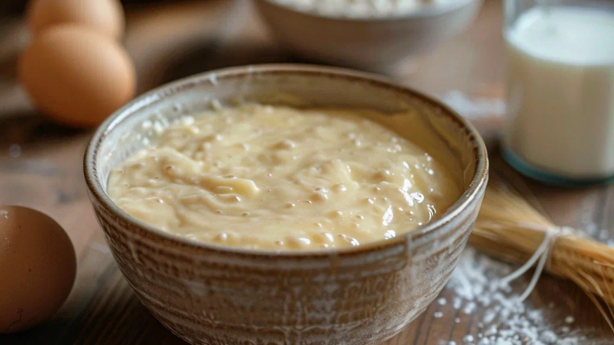 Постепенно всыпайте сухую смесь к жидкой, размешивая до однородного теста без комков.