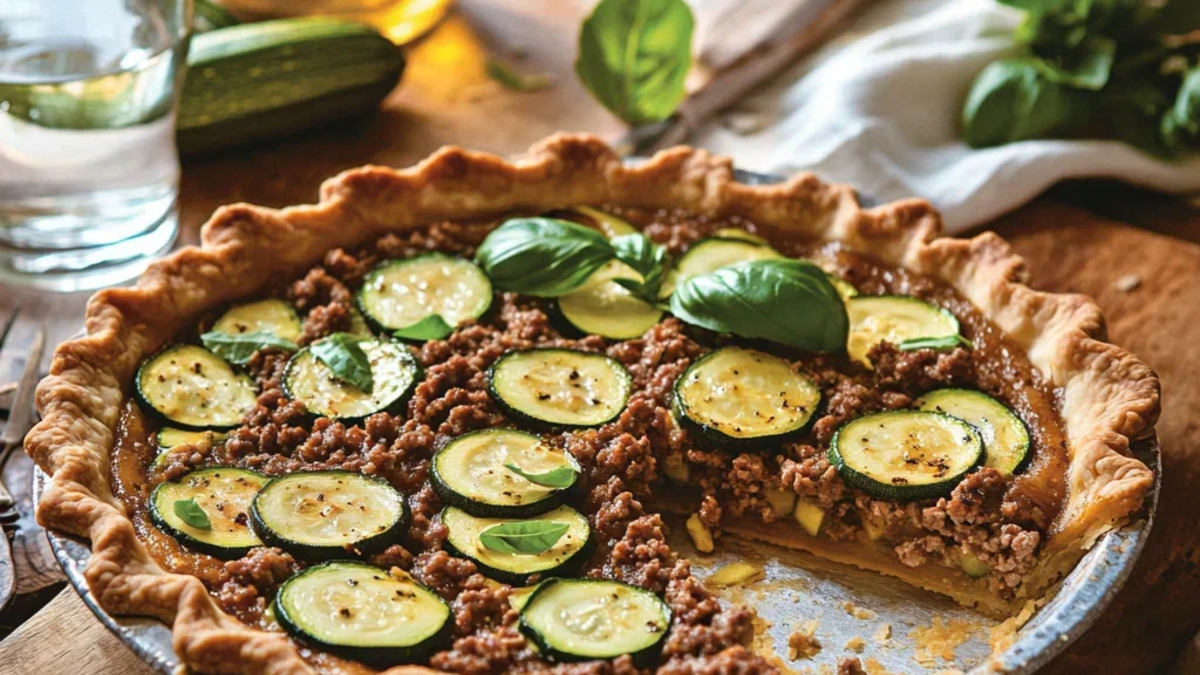 Летний пирог с кабачками, фаршем и базиликом
