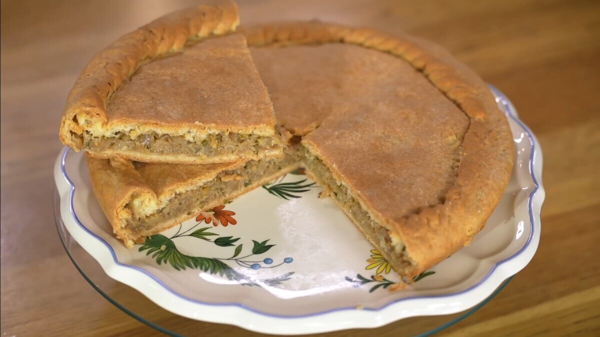 Пирог с капустой, пореем и зеленым луком