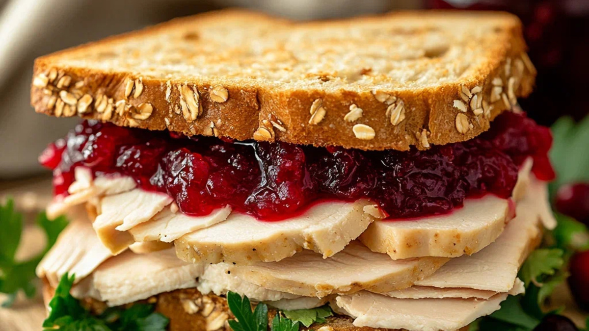 Этот сэндвич — идеальный баланс нежной индейки и свежести клюквенного соуса с лёгкой сладостью и кислинкой. Вкусно, сытно и очень уютно — отлично подходит для домашнего перекуса или лёгкого обеда.