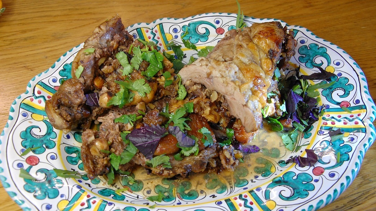 Лопатка ягненка, фаршированная курагой, инжиром и орехами