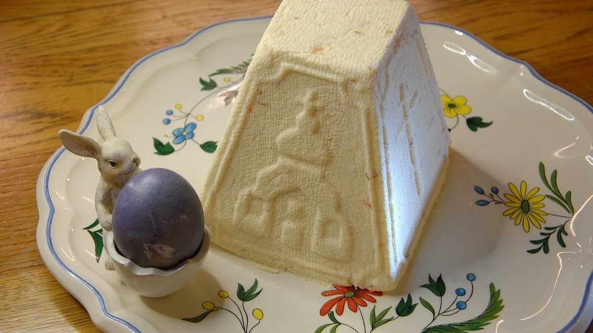 Сегодня у меня современная версия заварной пасхи, делать ее лучше минимум за двое суток до праздника. Я обычно беру жирный творог, 19–22%, и лучше его не взбивать блендером, а протереть — он становится более воздушным, легким. И, конечно, всегда добавляю в пасху что-то по настроению — цукаты, или орехи, или шоколадные капли.