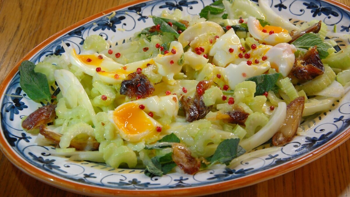 Салат из фенхеля, сельдерея и фиников с заправкой тахини