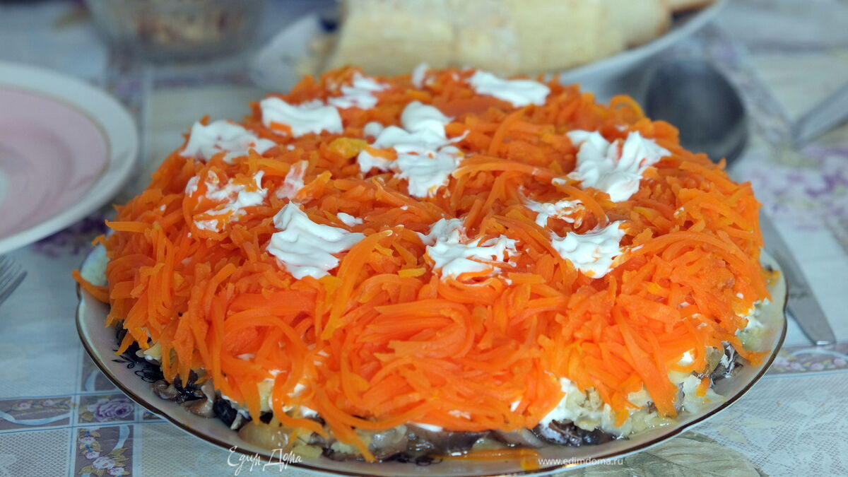 Вкусный и красочный салат «Лисья шубка» предлагаю приготовить с грибами. Простой рецепт на каждый день.