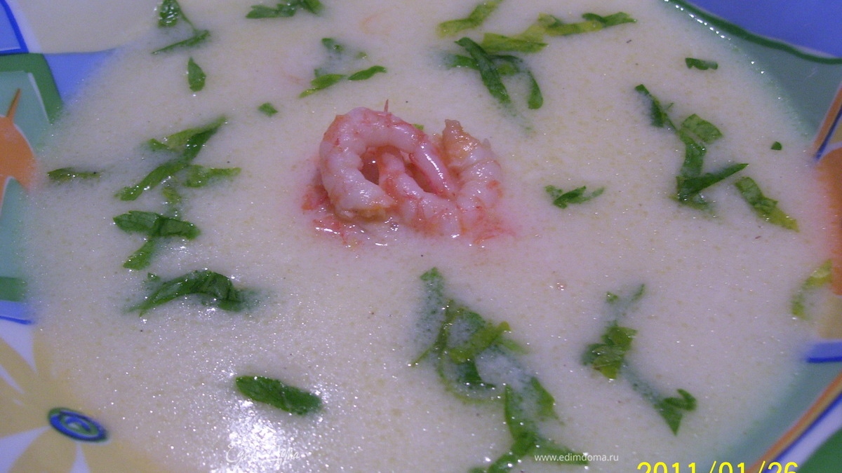 Средиземноморский сливочный суп с креветками