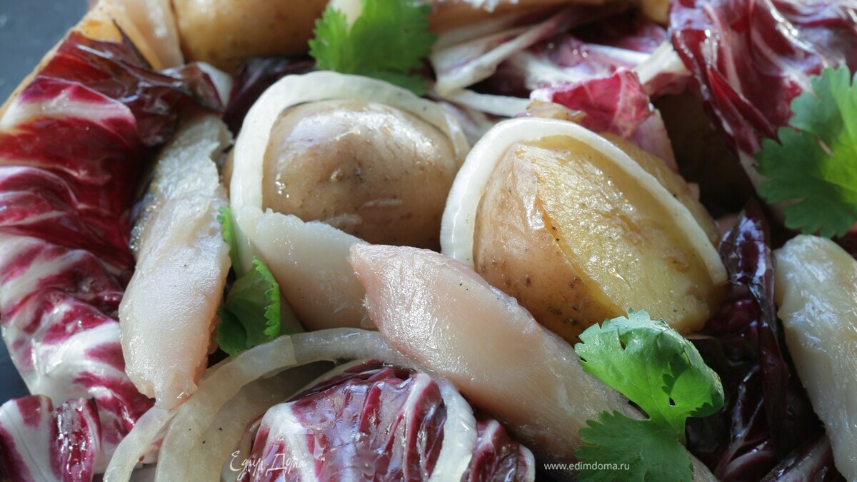 Такой салат делала моя мама, правда, о радиккио мы тогда не знали, просто она к картошке добавляла МНОГО лука, масло использовала подсолнечное, а в остальном все так и было. (С радиккио ей тоже больше понравилось!)