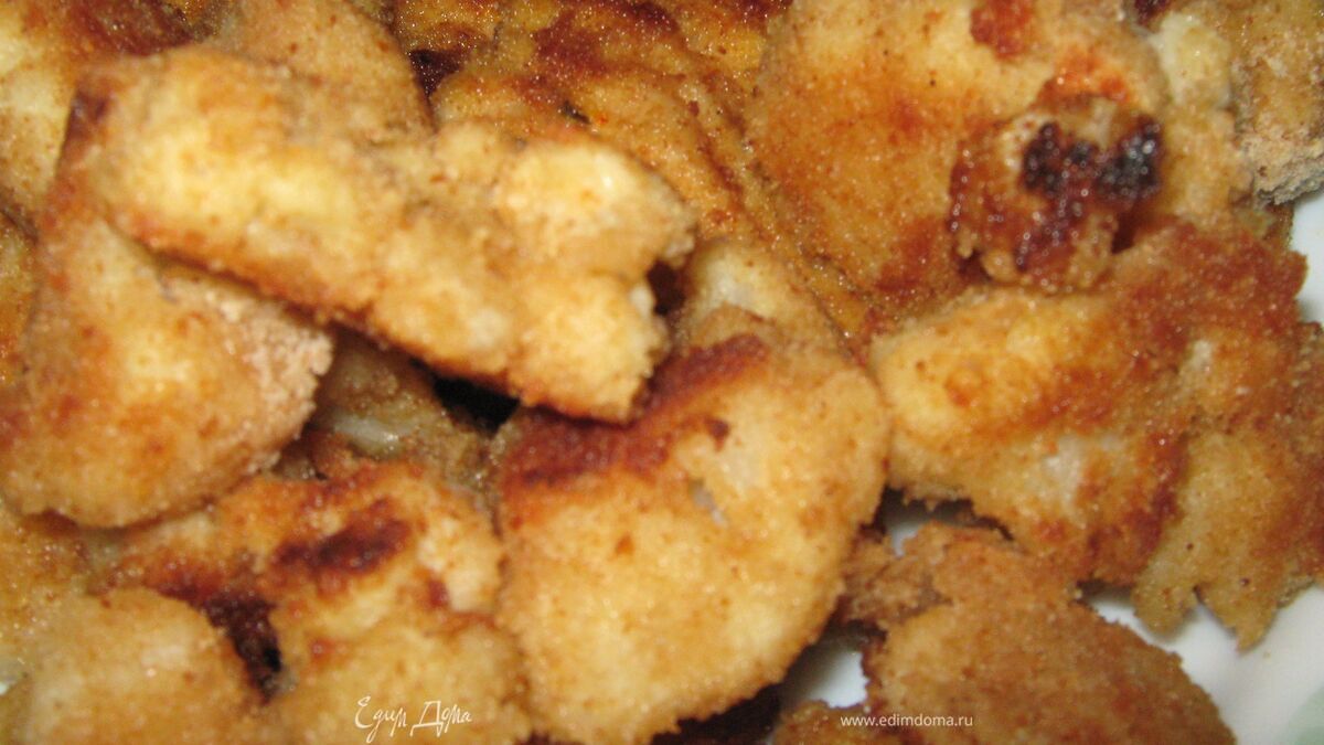 - Шаг 1Нарезать куриную грудку тонкими полосками, каждый кусочек посолить и добавить сладкую паприку, затем каждый лэйс помазать зернами горчицы и обвалять в панировочных сухарях. Обжарить.