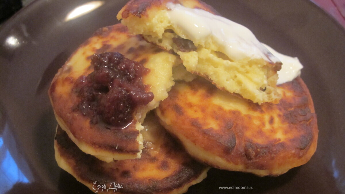 Сформировать сырники (я делаю круглые), обвалять в муке и обжарить с двух сторон в растительном масле до хорошо золотистого цвета. Подавать со сметаной, вареньем и конечно же с утренним кофе!
